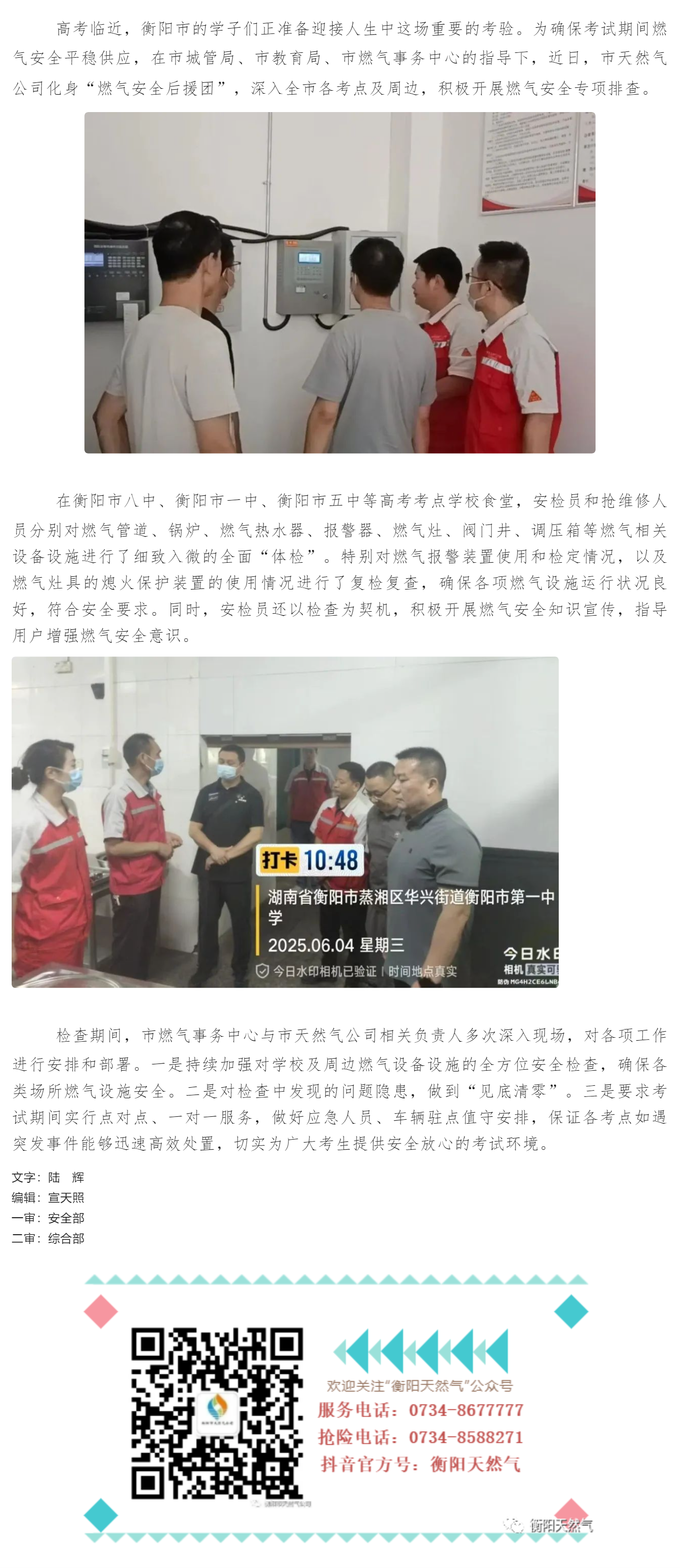 市天然氣公司積極開展燃?xì)獍踩珜m?xiàng)檢查 全力護(hù)航高考燃?xì)獍踩?/h3>